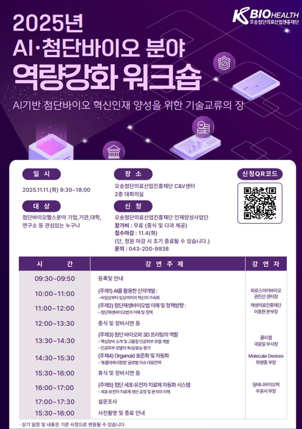 [공지] 첨단재생의료 관련 - AI·첨단바이오분야 역량강화 워크숍 안내