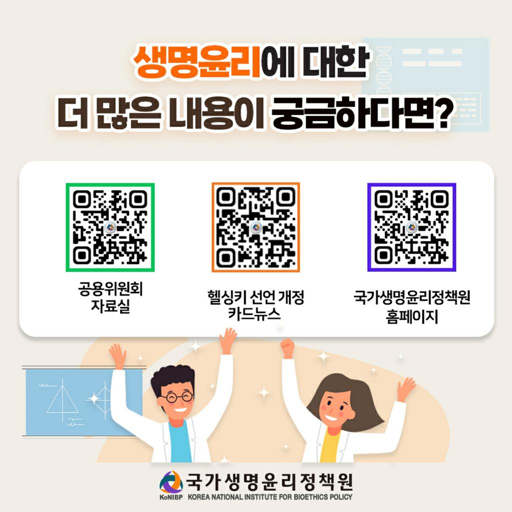 마지막 장의 QR코드를 스캔하시면 생명윤리에 대한 더 많은 내용을 확인하실 수 있습니다.